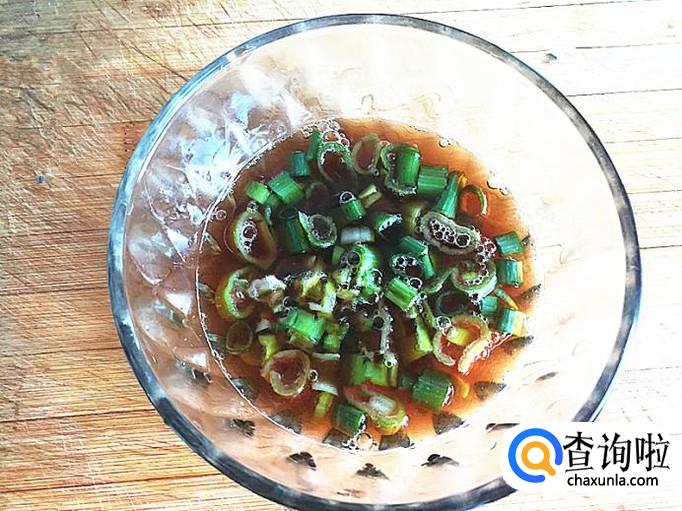 把准备好的白糖、葱叶段、食盐、醋、凉白开水等放入适量的容器里搅拌均匀备用。