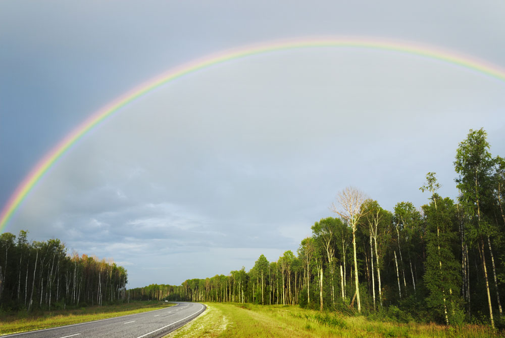 严格来说,彩虹并不是弯的,而是圆形。因为看的人在地面上,彩虹的另一半被大地遮挡,所以只能看到半个环。那为什么会形成弧形形状呢?