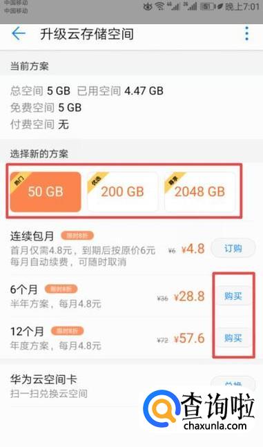 然后我们选择一个新的方案,然后点击购买进行付款就可以了。