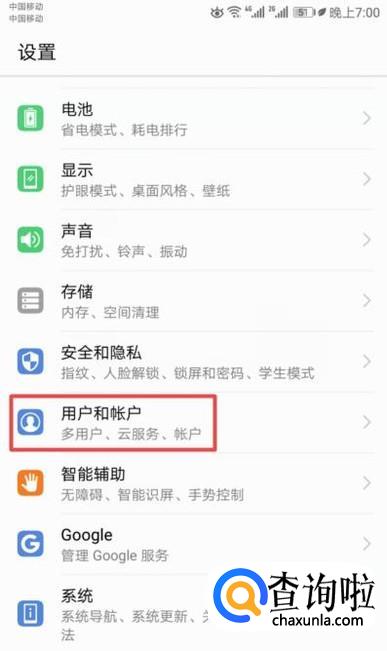 弹出的界面,我们点击用户和账户;