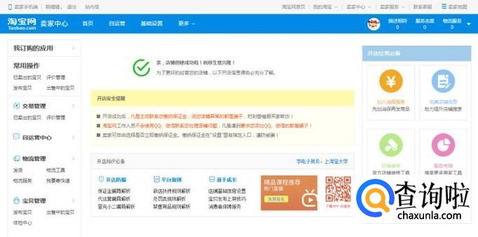 就可以成功开一家淘宝店铺了,为了完善自己的店铺,可以根据自己的需要点击右方的“加入消保服务”,完善店铺信息以及给自己店铺进行下装修都可以吸引到客流量哦。