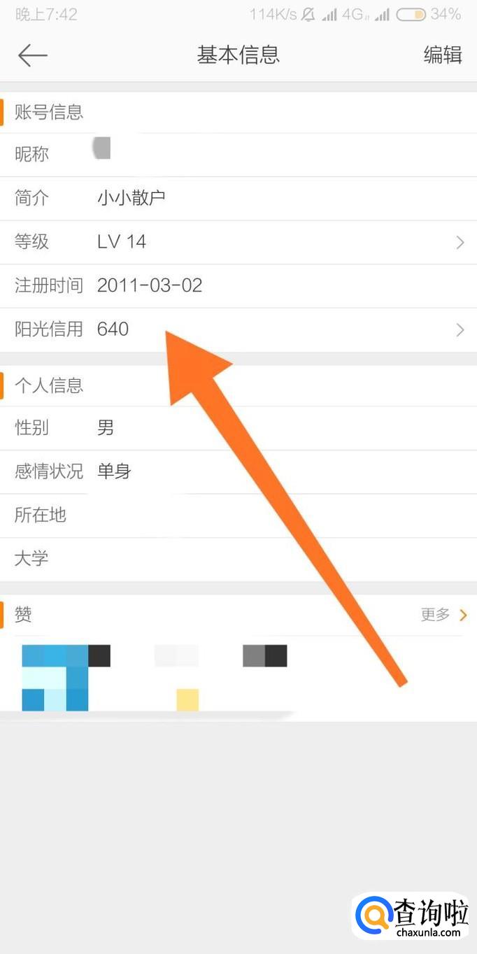 进入“基本信息”页面后,就可以看到微博阳光信用。