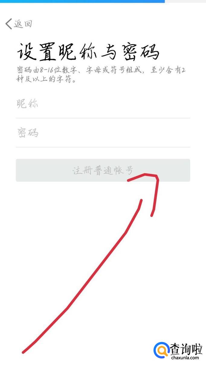 你会看到出现一个新的界面,如图1所示。输入你的QQ昵称和登录的密码就好了,点击“注册普通账户”选项,如图2箭头所示。
