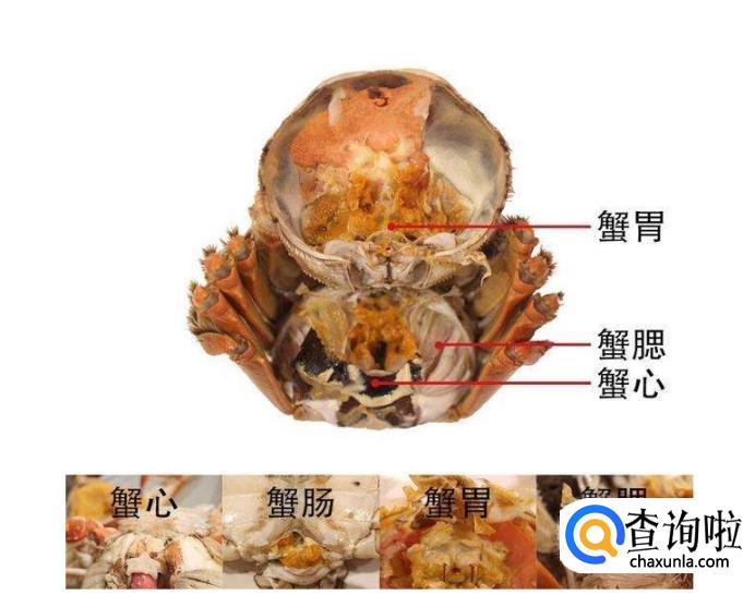 除了蟹脐外,还应去除蟹胃、蟹腮、蟹心和蟹肠,这4个部位也是不能食用的。