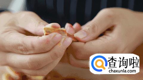 小贴士:注意为了方便掰蟹壳,要将拇指和食指从蟹壳底部着手掰开。