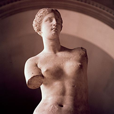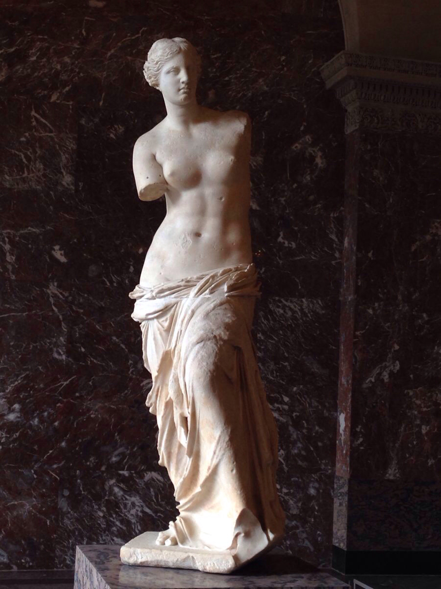 断臂原因维纳斯是希腊米洛农民伊奥尔科斯1820年春天刨地时掘获的。出土时的维纳斯右臂下垂,手扶衣衿,左上臂伸过头,握着一只苹果。当时法国驻米洛领事路易斯-布勒斯特得知此事后,赶往伊奥尔科斯住处,表示要以高价收买此塑像,并获得了伊奥尔科斯的应允。但由于手头没有足够的现金,只好派居维尔连夜赶往君士坦丁堡报告法国大使。大使听完汇报后立即命令秘书带了一笔巨款随居维尔连夜前往米洛洽购女神像,却不知农民伊奥尔科斯此时已将神像卖给了一位希腊商人,而且已经装船外运。居维尔当即决定以武力截夺。英国得知这一消息之后,也派舰艇赶来争夺,双方展开了一场激烈的战斗,混战中雕塑的双臂不幸被砸断,从此,维纳斯就成了一个断臂女神。