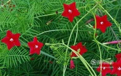 星星花能够开出像星星形状的花朵,花朵的颜色有红色和白色,是一种很容易种植的爬藤植物。