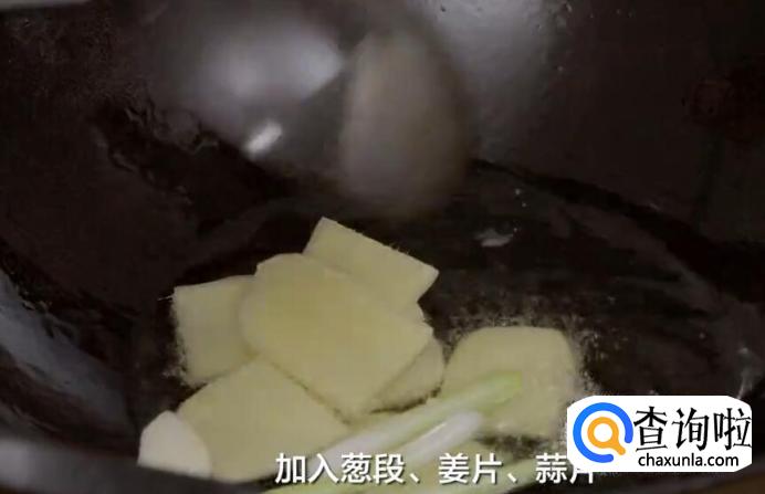 接下来起油锅,加入葱段、姜片、蒜片,煸出香味后捞出。