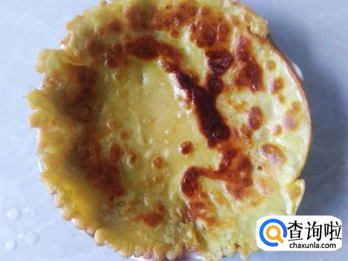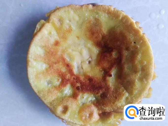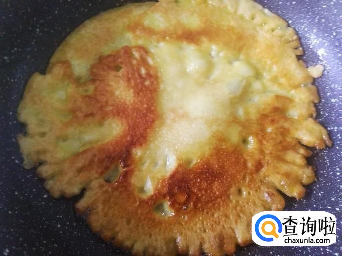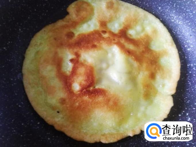 小火煎2分钟左右,把饼翻转再煎,煎至两面金黄色就可以了。