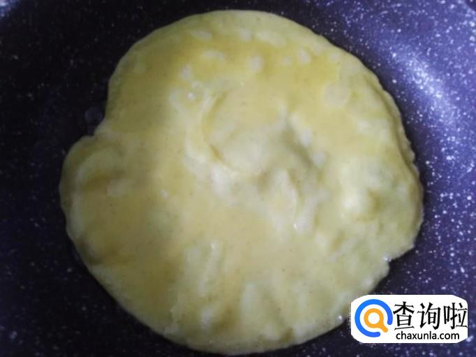 把适量的浆糊倒到锅里,然后轻轻摇动平底锅,不给粘锅。【浆糊尽量倒少点,分几次把浆糊煎,这样煎出来的饼又薄又脆】