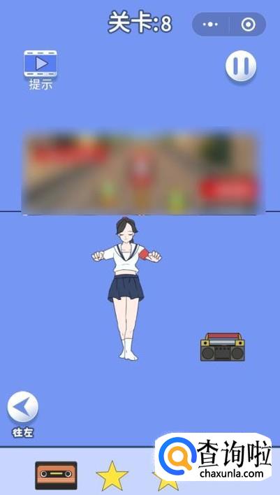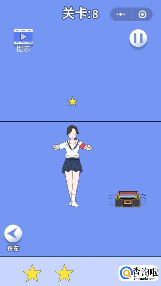 把从第一个房间搜集的磁带,放到播放器播放音乐,姐姐会开始跳舞,头上会出现一颗星星,点击搜集。