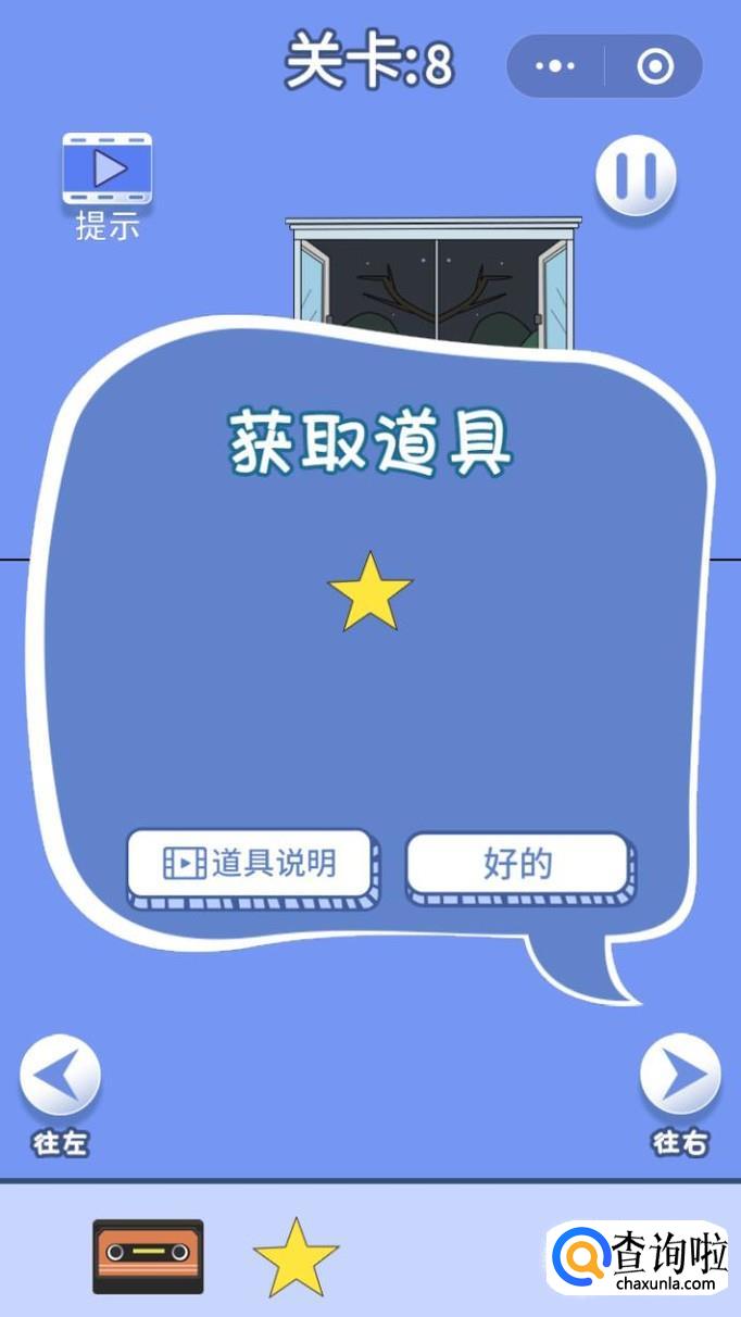 首先,我们来第8关,先观察下房间里有什么可以搜集和用的。