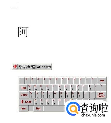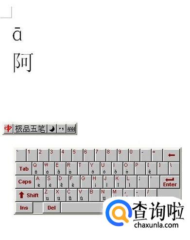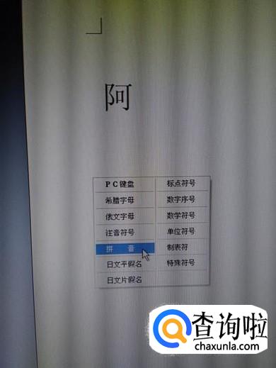点击拼音选项之后,出现一个小键盘,我们直接点击Q键,阿字上面就出现有音调的拼音了。