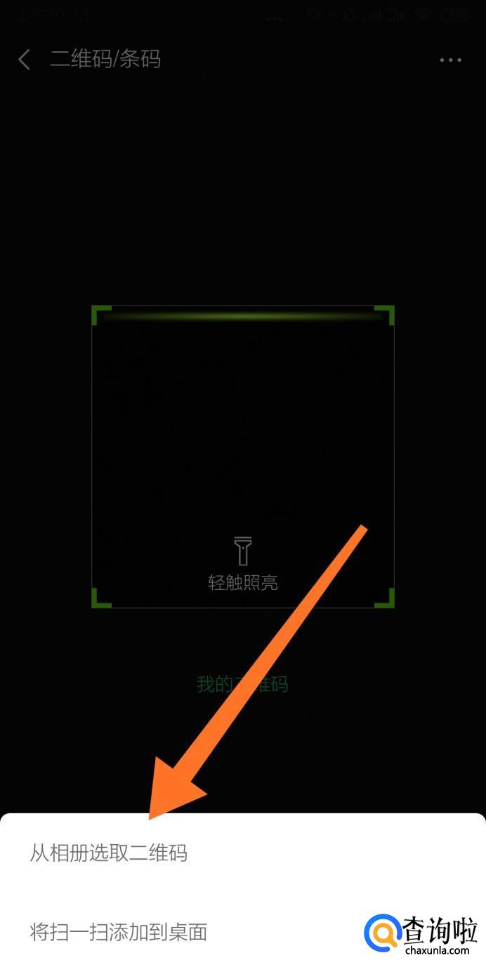 点击“从相册选取二维码”选项后,选取并扫描刚才保存的二维码图片。