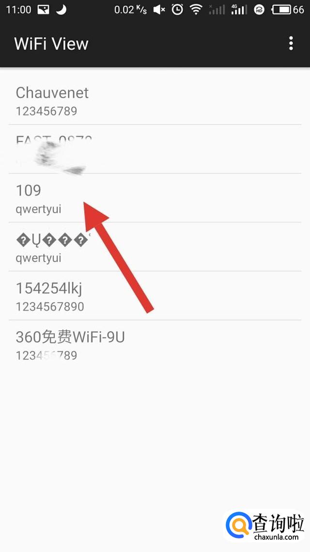 成功连接后,我们再打开另一款软件,WiFi密码查看器,事先手机要获得root权限,打开后就可以查看到所连接的WiFi密码。