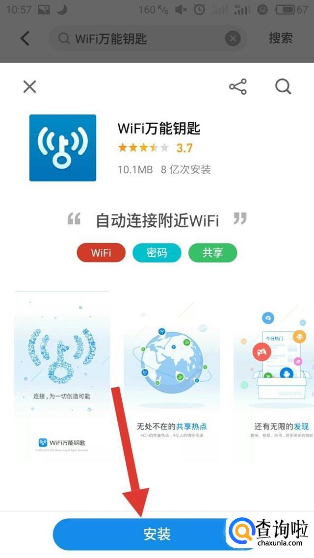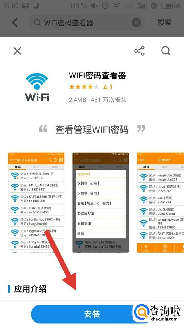 搜索下载两款软件,WiFi万能钥匙和WiFi密码查看器,下载后并立即安装。