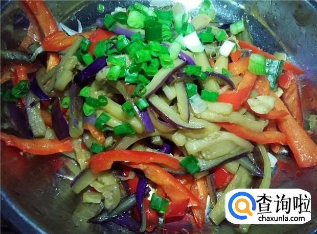装盆,撒上葱花,一道美味的红辣椒炒茄子就已经做好了。