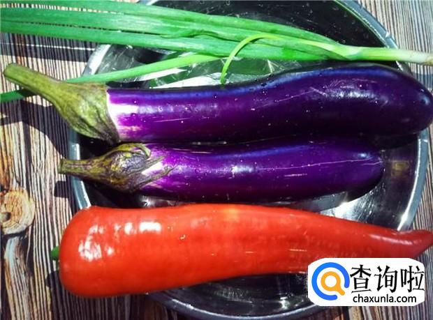 准备好所以原材料:茄子两根、红辣椒一根、葱一根。