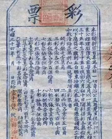 之后就有李鸿章管辖下的北洋顺直义赈彩票,张之洞在湖广发行的湖北签捐彩票。发行这些彩票目的其实都很简单,那就是筹钱。李鸿章是在八国联军侵华后,让商人筹钱发行的。张之洞是为了赔付甲午战争失败后,朝廷摊派给湖广地区的银两。