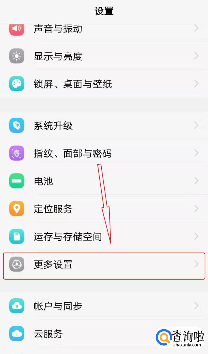 在设置里面找到“更多设置”,并点击进入。