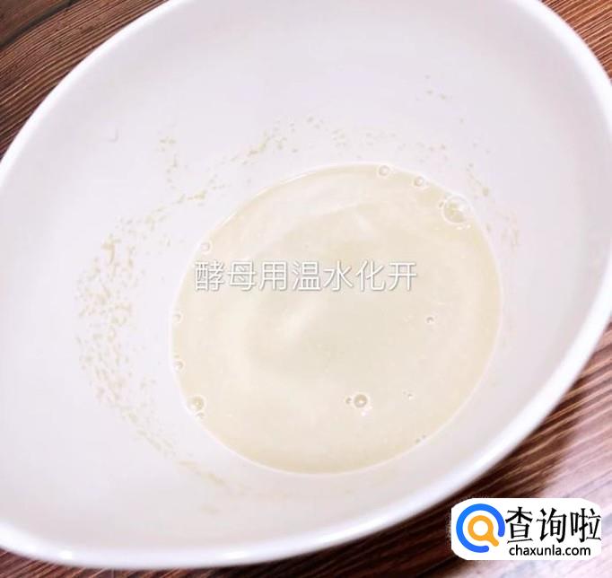 然后将酵母用温水化开,如下图所示。