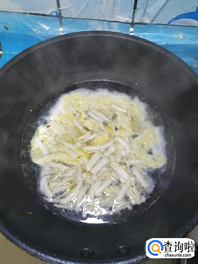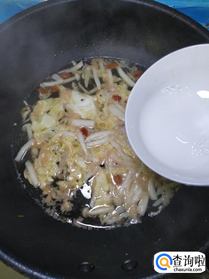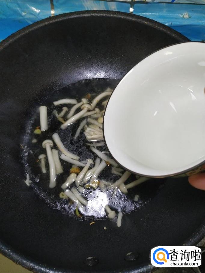 将白玉菇炒软之后,加入适量清水,大火将水烧开。