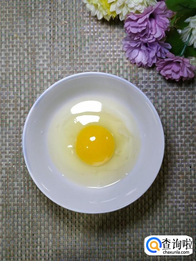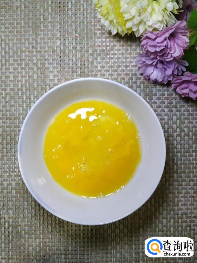 碗中打入一个鸡蛋,加入适量食盐,打散备用。