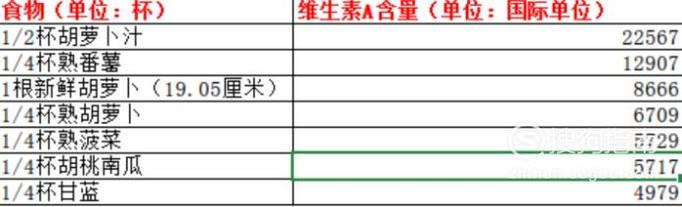 胡萝卜、番薯、菠菜、胡桃南瓜、甘蓝、罗马甜瓜、杏子、甜椒、芒果、西兰花、番茄、桃子、木瓜等等,其中胡萝卜、胡桃南瓜、番薯、菠菜最佳。