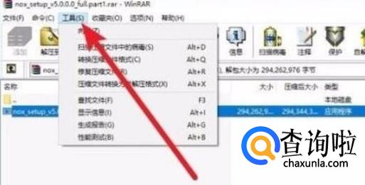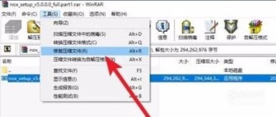 在解压软件工具栏中的下拉菜单中,选择修复压缩文件的选项。