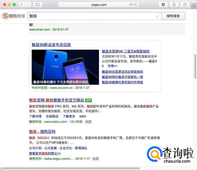在搜索结果中点击魅族官网进入。