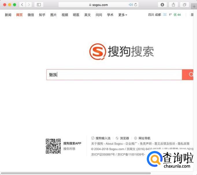 进入搜狗搜索界面,输入“魅族”进行搜索。