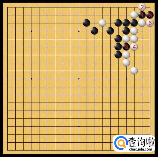 白棋随即在白6处立,白棋不给右上角黑二子任何存活的机会,白棋打吃黑二子。如图所示。