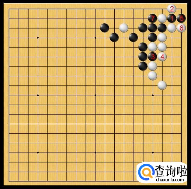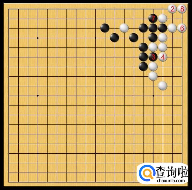黑棋于黑7处立,黑棋打吃白子,试图解救出右上角的黑二子,黑棋是在做最后的挣扎。如图所示。