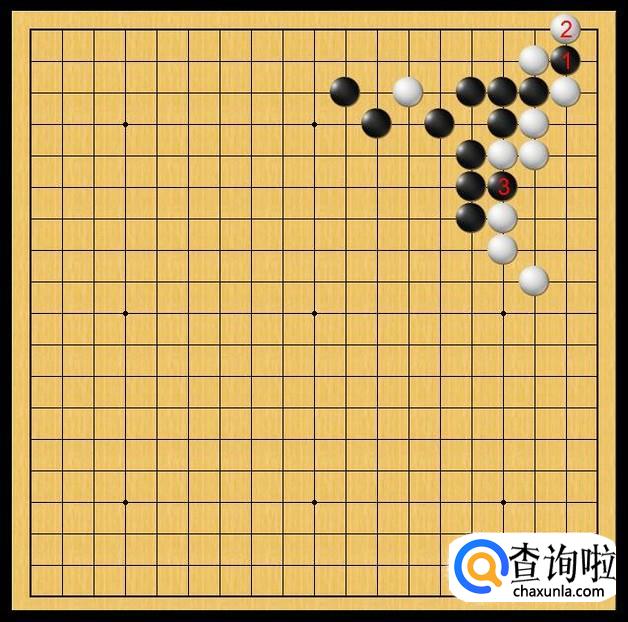 黑棋没有理会白棋的叫吃,黑棋于黑3处冲,黑棋想利用白棋叫吃黑子之际,冲进白棋底边,给白棋带来大麻烦。如图所示。
