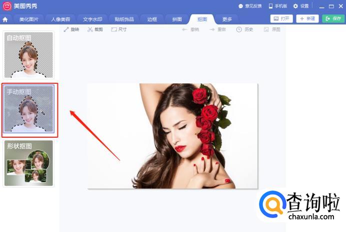 抠图有三种方式,这里建议选择“手动抠图”,以保证图像的完整与自然。