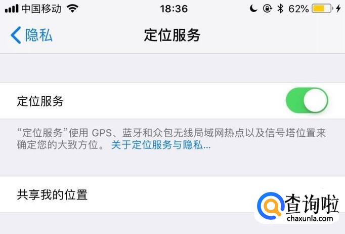 然后点击开启定位服务开关,如下图所示。