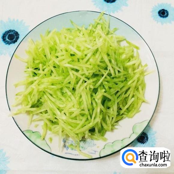 我们也可以加入一些黄瓜丝等配菜,加入黄瓜会有一种比较清新的感觉。