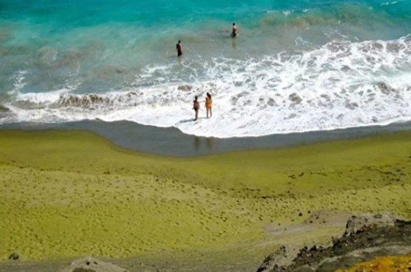 据说,如果有人擅自捡绿沙回家,就会遭到女神的报复。这千古传说和人们对自然神明的敬畏,从根本上保护了这片珍贵的沙滩。Papakolea沙滩所在的地区覆盖着绵延数千米凝固的熔岩流,没有遒路可以行车或是骑马,游客只能依靠自己的双脚在崎岖不平的火山岩上跋涉十几千米,才能走到Papakolea沙滩的附近。到达目的地后,还需要爬上一座陡峭的山崖,然后才有机会一睹它的真颜。远远望去,整个海滩好像一块细腻的碧玉陈列于海天之间,令每一个看到它的人都感到惊奇万分。漫步在这个绿色海滩上,感觉自己像是踩在橄榄绿的宝石上,不得不小心翼翼,生怕踩坏了宝石。