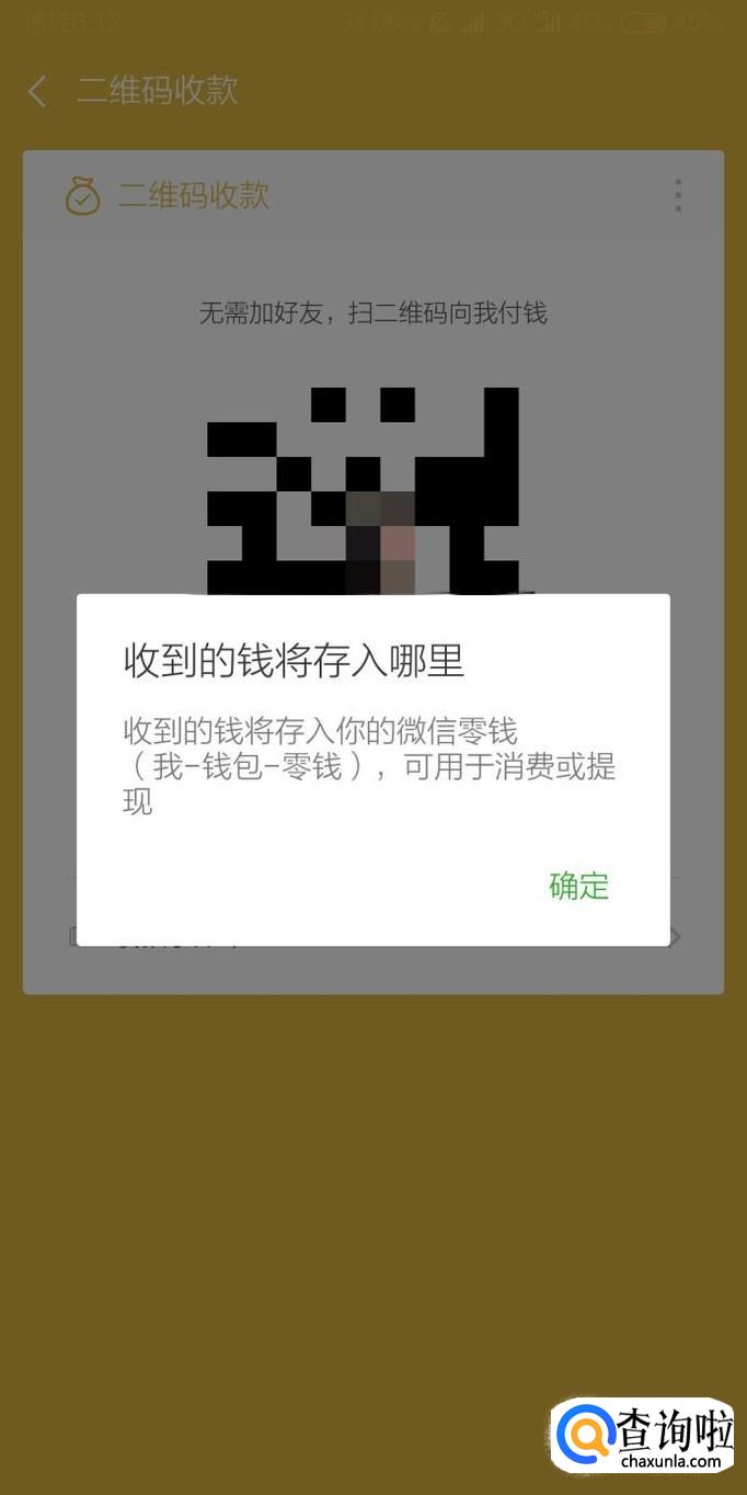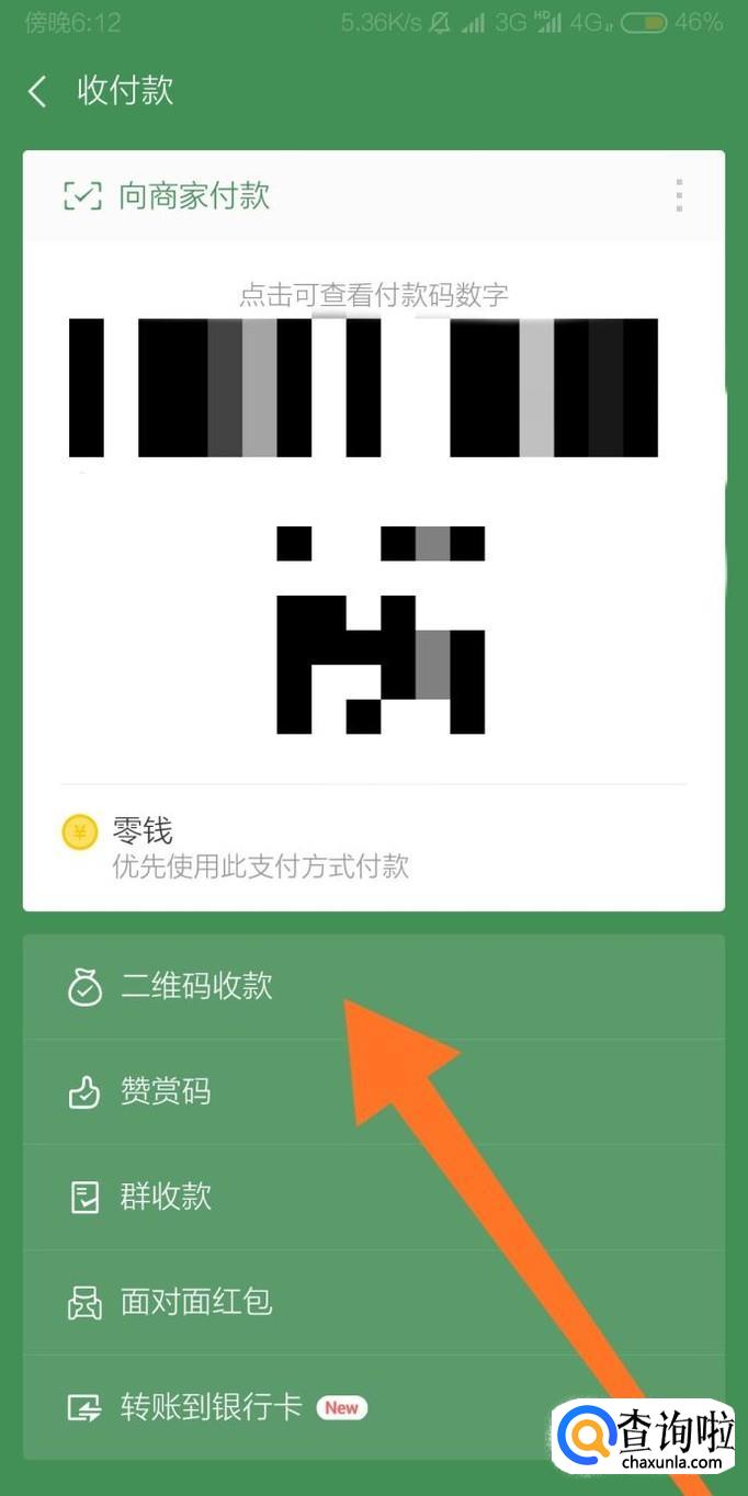最后点击“二维码收款”选项就可以打开二维码收款页面,别人只需要用微信扫一扫收款码就可以向我们转账。