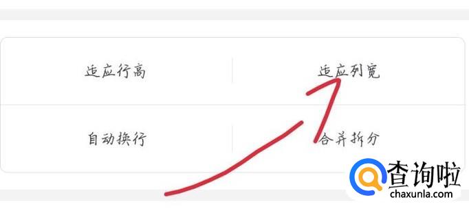 你会看到出现一个新的界面,点击“适应列宽”选项,如图2箭头所示。这样你就可以让表格宽度自动适应列宽。