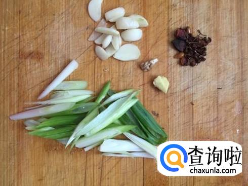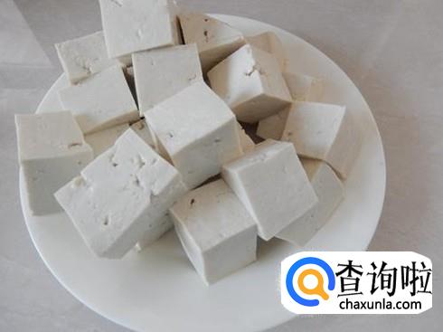 先把豆腐切成块状,大小要适中,然后把大蒜大葱生姜切好备用。