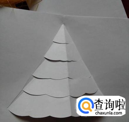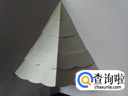 将剩下的部分继续剪开,注意虚线的部位不要剪哦,只剪实线的部分,完成后全部翻到背面,圣诞树造型就出来了
