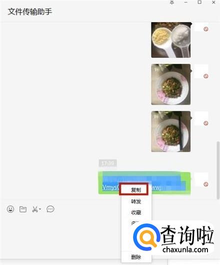 接着在电脑文件传输助手中找到这个聊天记录并点击复制,如下图所示。