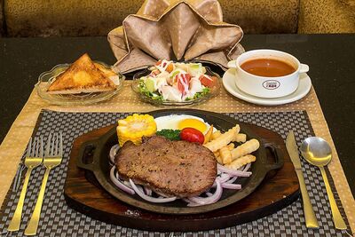拿刀叉的方法:总的来说,右手拿刀,左手拿叉。锯齿得刀用来切肉,普通的刀用来切蔬菜,最小的那种小刀,是用来抹果酱的。叉子别一下子插大块物品,别一口吃不下去。勺子是用来喝汤的。