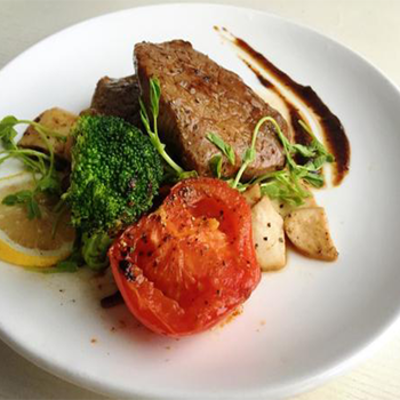 4、用叉子将小口的食物送到嘴里,叉口向下,吃的时候柄背抬起。