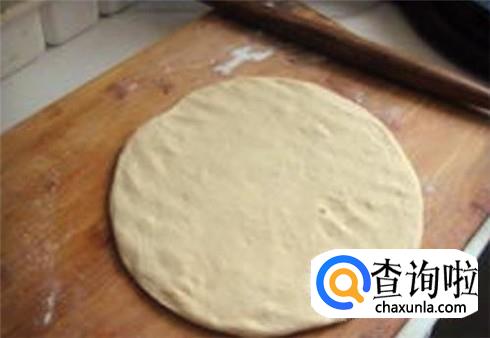 面团醒半小时后开始做饼,将面团揉的稍微细一些,揪成一个个面剂子,大小随你自己的意思,用擀面杖压一压,不要太薄,那样做出来的面饼不好吃。
