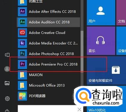 在开始程序中找到Adobe Premiere Pro CC2018,点击左键启动软件。