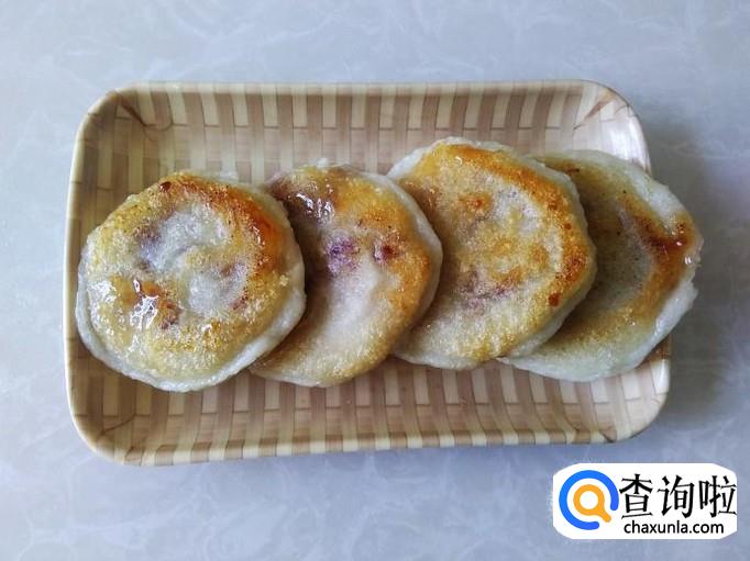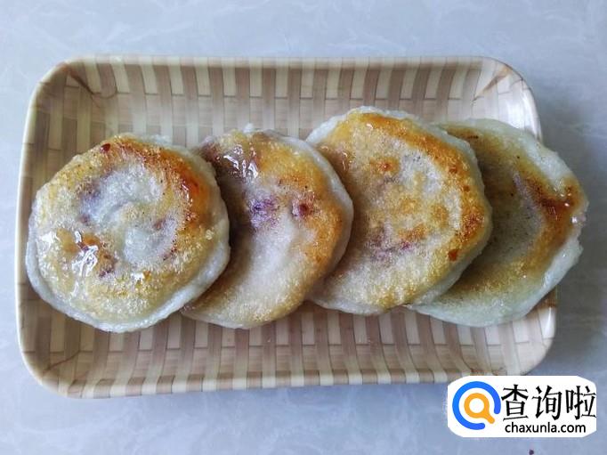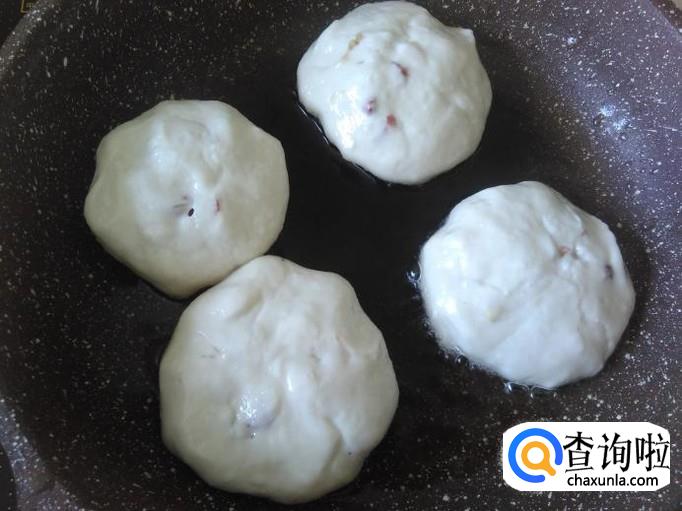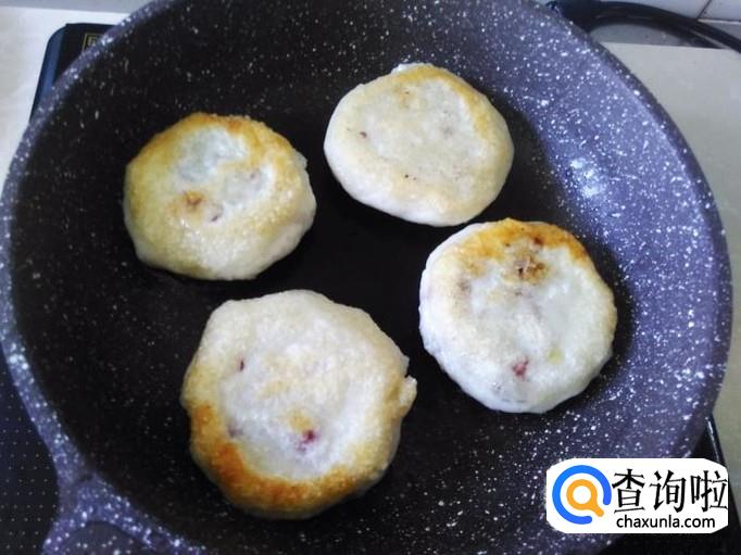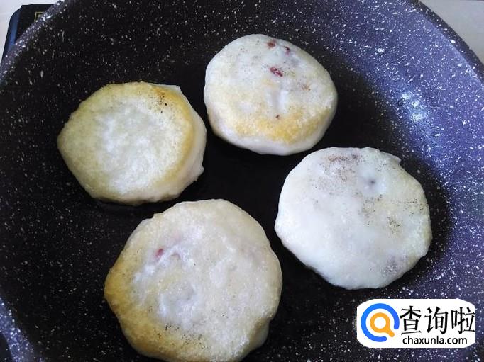 热锅下油,放做好的饼进去用小火煎,煎的时候小饼要隔开距离不要粘在一起,因为糯米团只要一碰上马上就粘起来