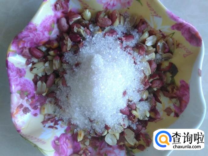糯米粉200克,花生70克,白糖适量。