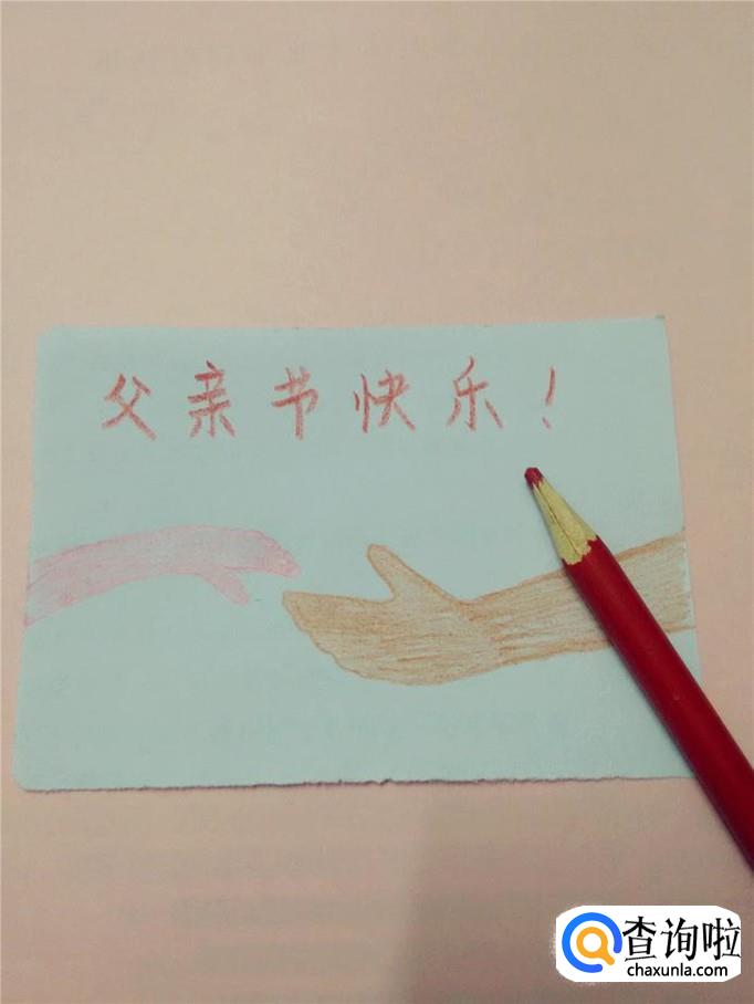 在两只手臂上方,用红笔写出父亲节快乐几个字,父亲节贺卡就做完了,这张贺卡虽然只有简单的两只手臂,却表达了父亲对孩子的关爱,以及孩子对父亲的感激之情。